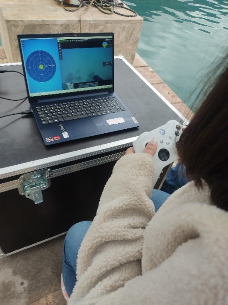 During this demonstration, attendees had the opportunity to learn about the operation and performance of the underwater drone (Remotely Operated Vehicle - ROV), model BlueRov2, which was purchased through the project. This underwater drone has 8 motors with propellers, which allows it to move in all axes and maintain a stable depth. It is also equipped with an HD camera with lighting and sonar for recording the seabed and locating various objects, including shipwrecks or various debris. In addition, it is equipped with a mechanical arm with a grab and a sampler for taking samples of seawater from the water column, and its working depth is 300 meters.